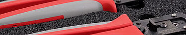 Diese manuellen Handcrimpwerkzeuge kommen zum Einsatz, wenn einzelne Steckverbinder, z.B. bei Autoreparaturen in der Werkstatt oder am Fließband in der Fahrzeugproduktion, beschädigt wurden und vor Ort manuell ausgetauscht werden müssen. Die Werkzeugsätze gibt es für koaxiale HFM®- und differenzielle H-MTD®-Datensteckverbinder.
