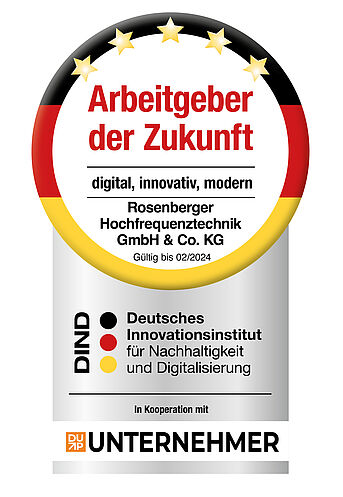und Digitalisierung (DIND) mit dem renommierten Siegel „Arbeitgeber der Zukunft“ ausgezeichnet. Das Siegel bestätigt die Qualitäten von Rosenberger als Arbeitgeber und ist wesentlicher Baustein zur Personalbindung und -gewinnung.