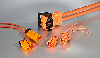 Ungeschirmte HV-Steckverbinder in Elektrofahrzeugen Die ungeschirmten HV-Produktserien HVU®48, HVU®50 und HVU®400 von Rosenberger sind speziell für moderne Elektrofahrzeuge entwickelt worden.