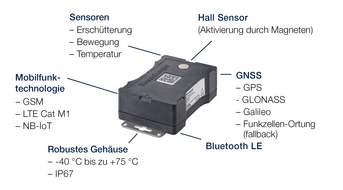 - Integrierte Bewegungs-/Schock- und Temperatur-Sensoren