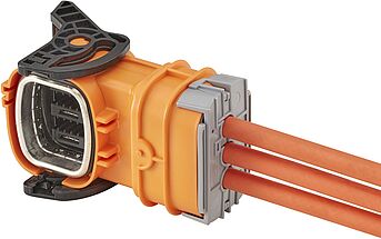 The Rosenberger HVR®100 connector system enables a maximum current capacity of 110 A at 85 °C, at cable cross section 16 mm² and a working voltage of 1000 V. The HVR®100 connectors takes up minimal space. It features a angled coupler for 3 shielded cables along with the corresponding header. The unique locking mechanism with special lever and CPA (Connector Position Assurance) allows locking only when mated and prevents accidental unmating.